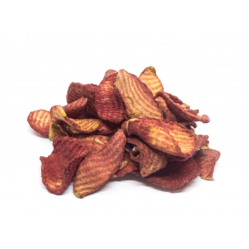Este snack de manzana con frambuesa, es libre de azúcar añadida, sin colorantes ni preservantes.